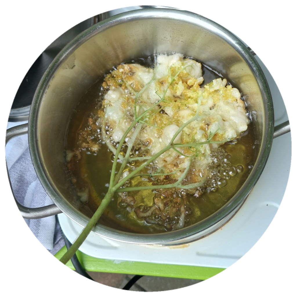 Zum Schluss backen wir zusammen Holunderblütenküchlein – die sollte wirklich jeder mal gegessen haben.